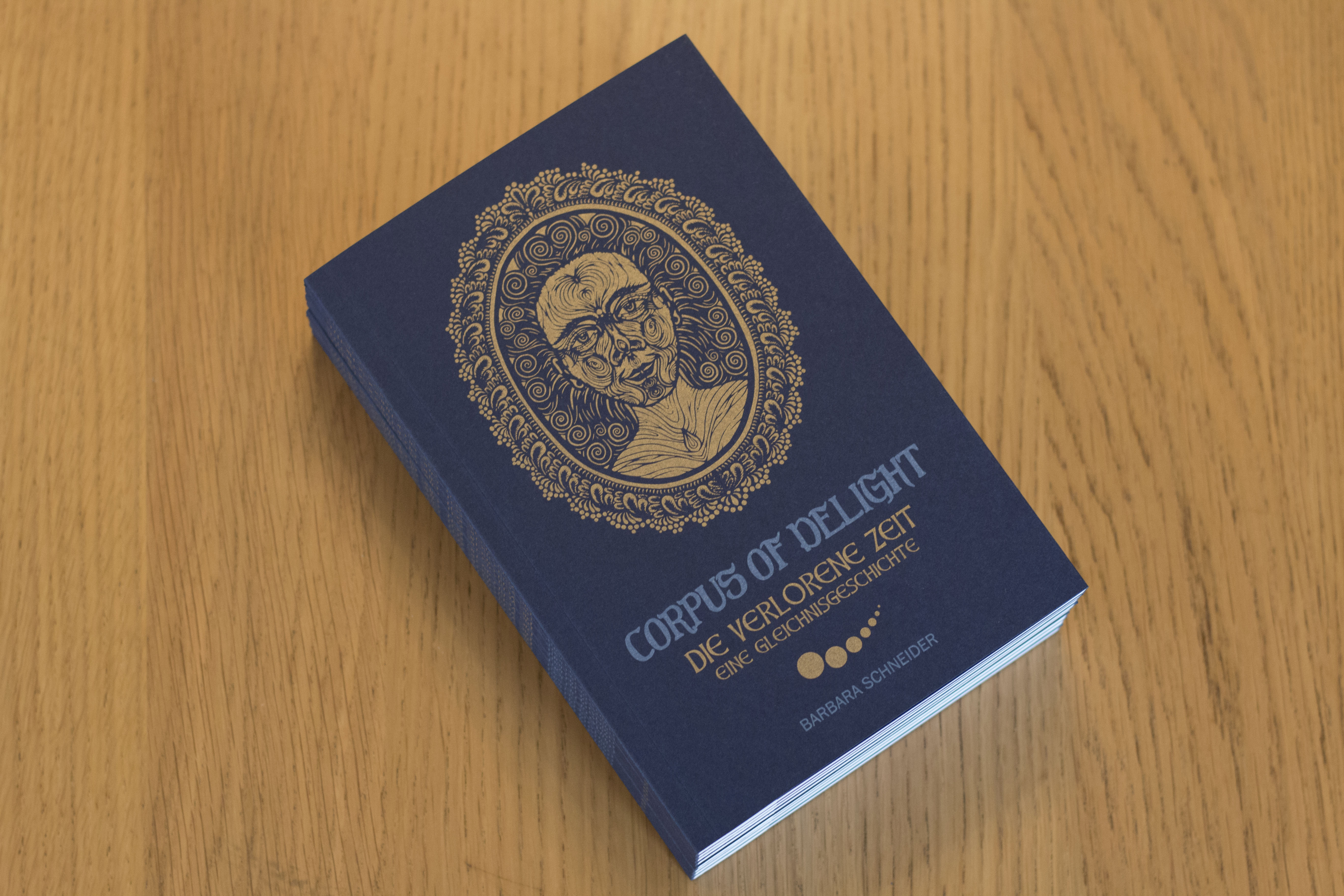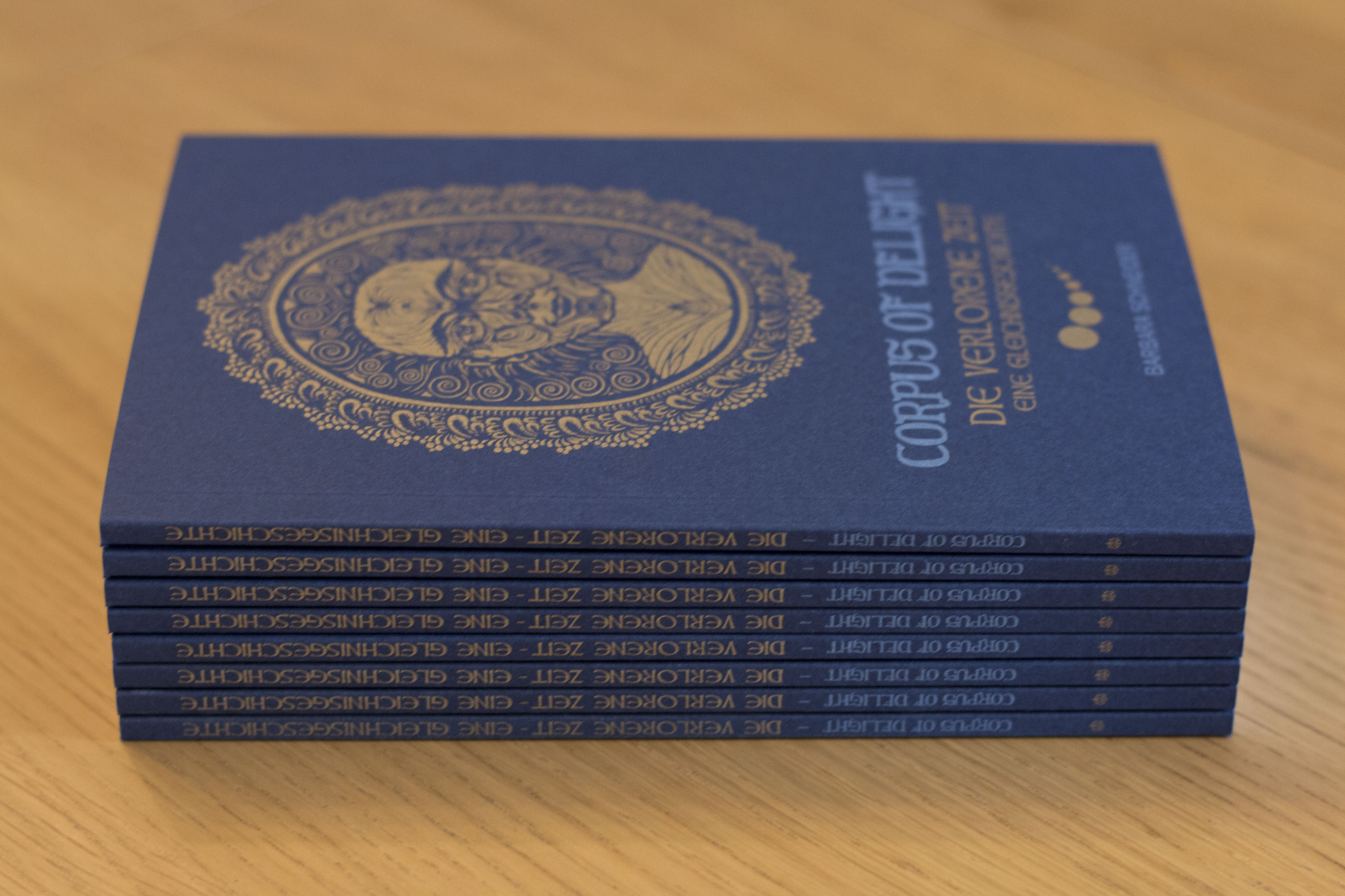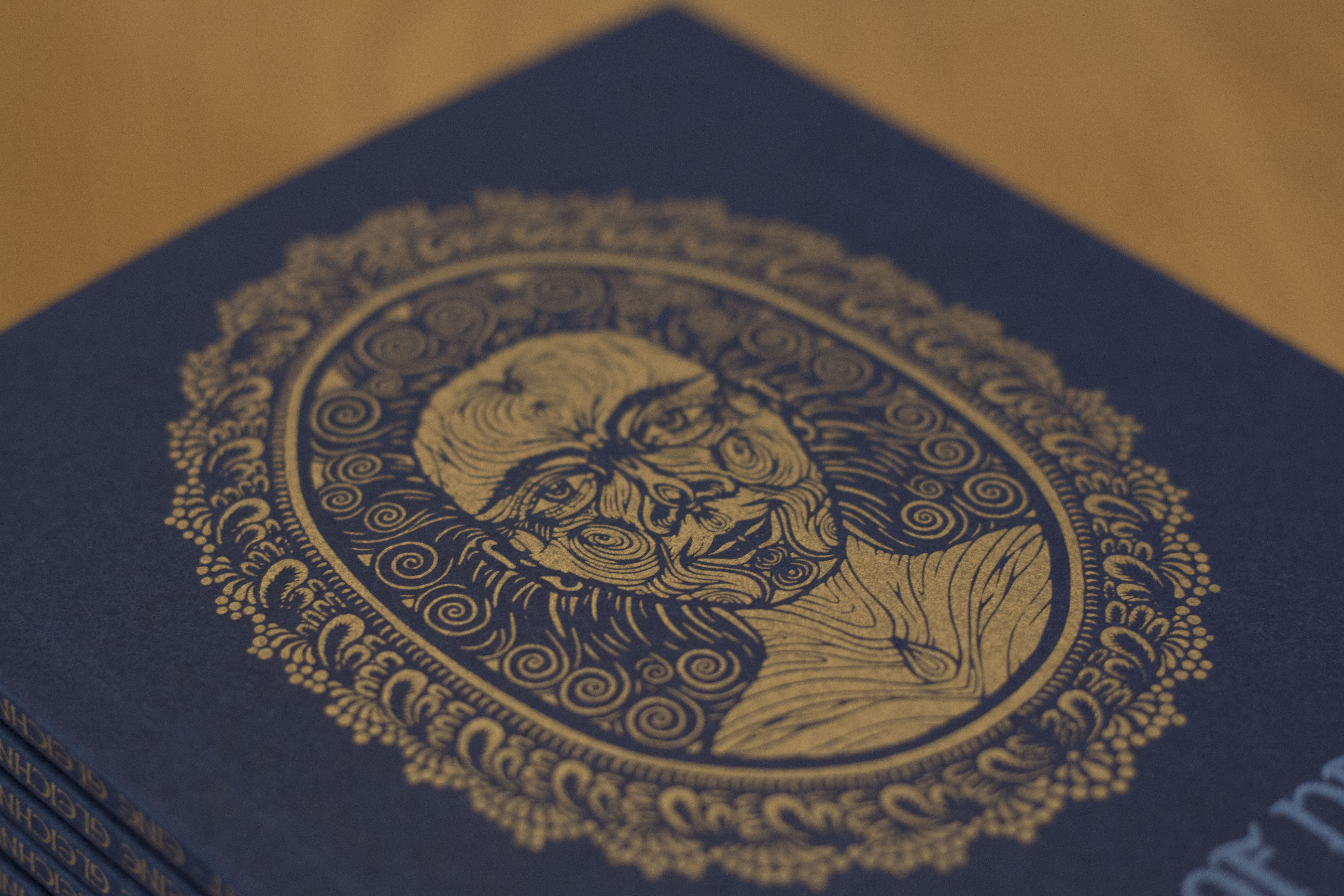 Der petrolfarbene Umschlag wurde mit Gold und Weiss bedruckt.